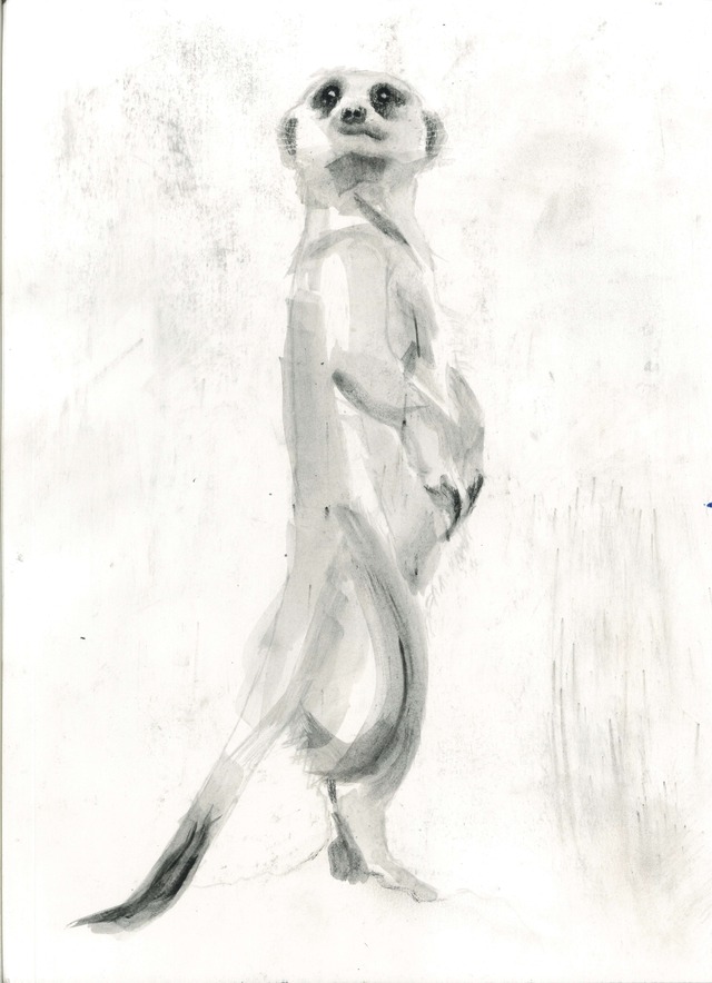 絵のサイズは約27×35、Bordern&Riley用紙 シャンパンゴールドアルミ額縁、額縁の厚みは3センチ。 木炭絵で描かれたミーキャットの作品です。ミーキャットの好奇心溢れる表情と、繊細な木炭の描写が魅力的な一枚です。自然の中で生きるミーキャットの姿は、見ている人に癒しと安らぎを与えてくれることでしょう。この作品をインテリアやキャンバスアートとして飾れば、あなたのお部屋に自然の豊かさと温かさをもたらします。