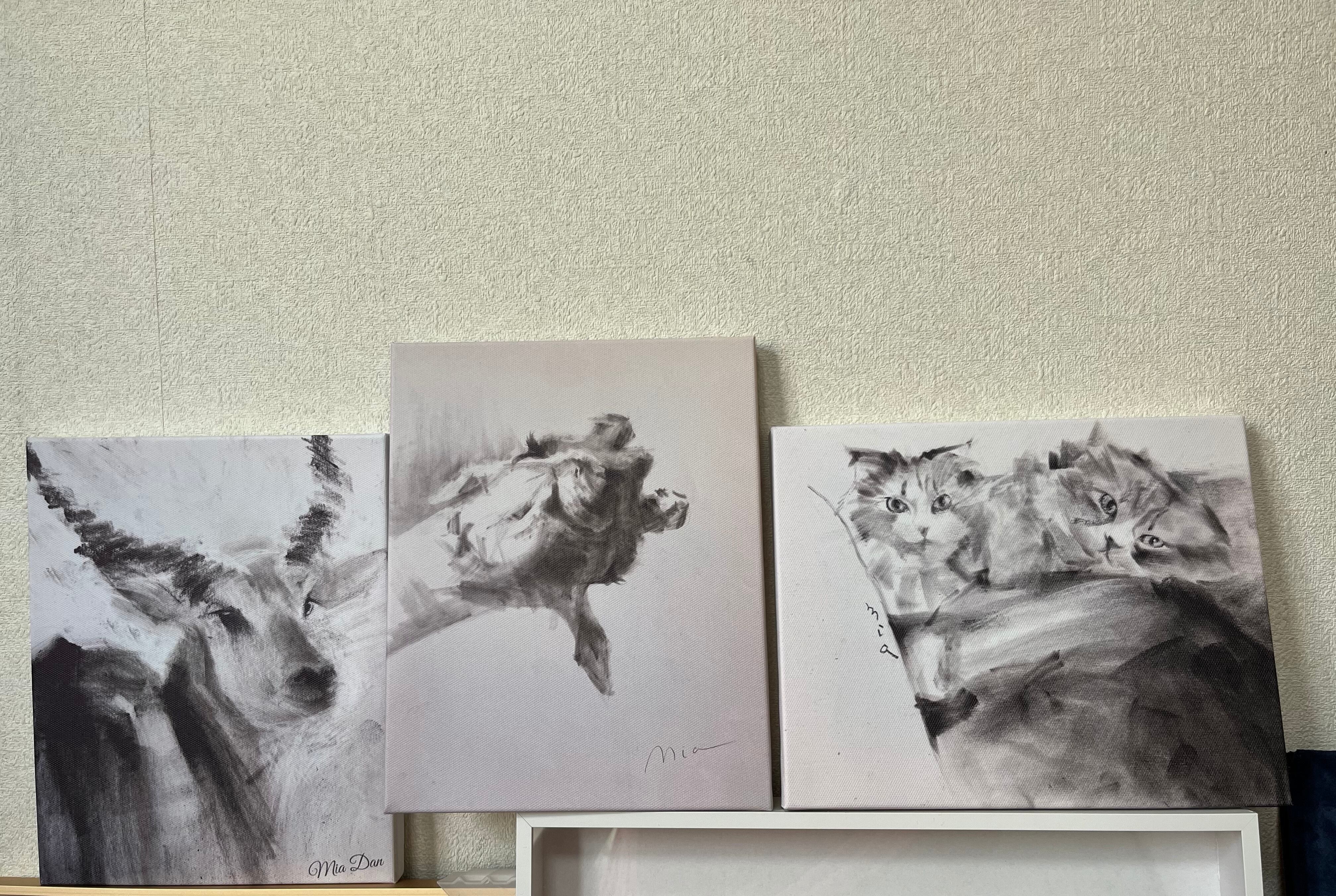 小さいキャンパスアートが登場しました!こちらは、原画の木炭画をキャンパスアートにした作品です。手のひらサイズなので、お部屋のちょっとした隙間やデスクなどに飾ってもピッタリ。